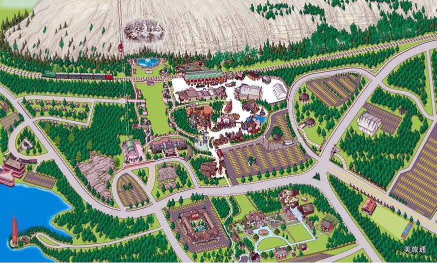 景观小火车,火车头1940年产,铁道绕石山一周,大概5英里长,耗时25-30分钟,每40-45分钟发车一次