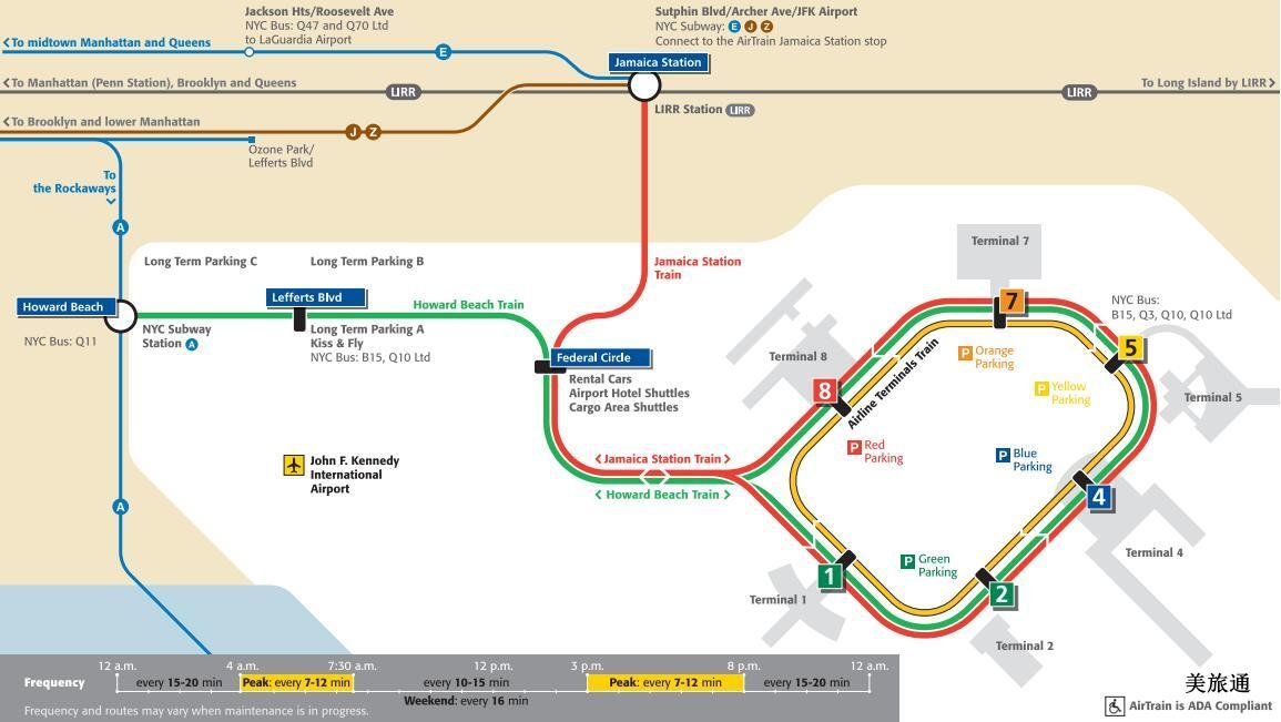 AirTrain 在航站楼内部的交通是免费的,但去地铁换乘站则要付费