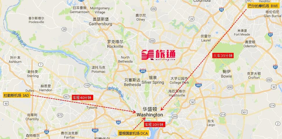 位于巴尔的摩市南郊,距离华盛顿特区45英里,飞这里的机票一般较便宜