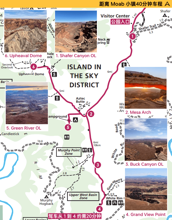 峡谷地国家公园分为 Island in the Sky, Needles, Maze 三个区域,