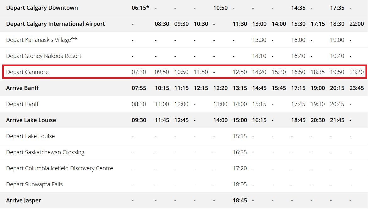 建议至少提前一天预订车票;如果在班夫下车可事先联系车公司看能否送到酒店门口