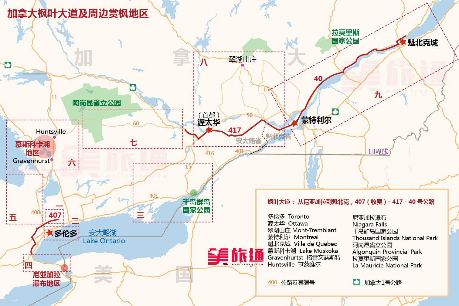 渥太华市内观赏枫叶的地方很多,如:Parliament Hill国会山,Rideau Cannel里多运河,Major’s Hill Park 将军丘公园,Nepean Point尼皮安瞭望点,Dominion Arboretum自治领树木园(中部试验农场)等。它们在渥太华旅游攻略中有详细的介绍,可以参考这里>>