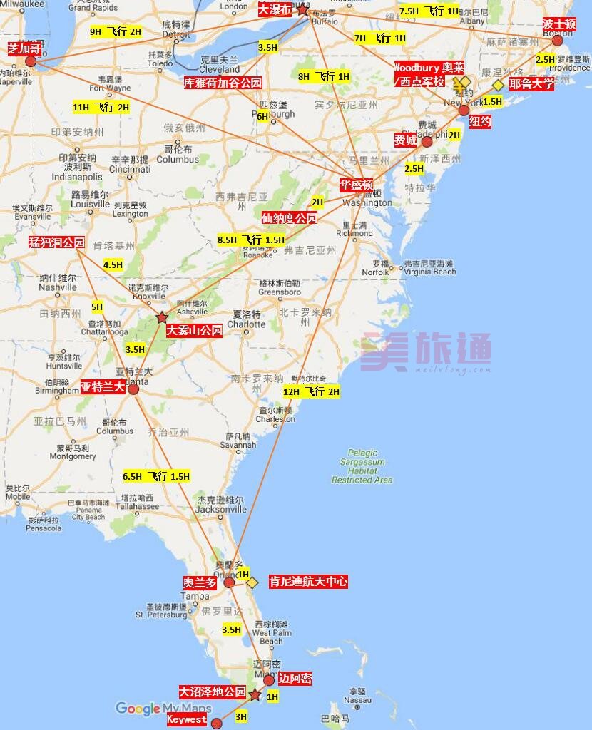 美国东海岸自驾时间图