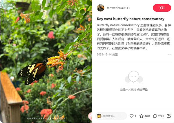 推荐小红书笔记(live图):Key west butterfly nature conservatory