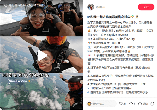 推荐小红书笔记:和我一起去北美最美海岛跳伞