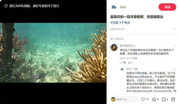 推荐小红书笔记:最喜欢的一段浮潜视频,无剪辑直出