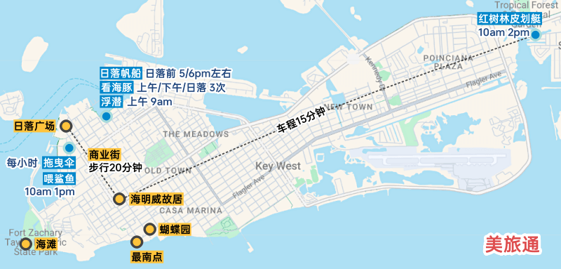 地址:距离日落广场15分钟车程,停车位少,可以 Uber,5114 Overseas Hwy, Key West, FL 33040