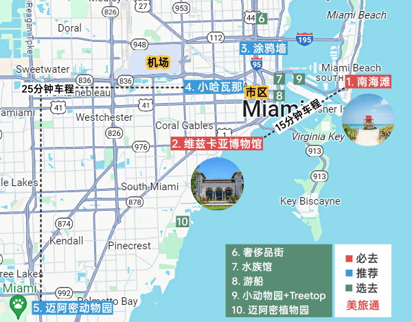 . 上午去『2.维兹卡亚博物馆』> 中午在『5.小哈瓦那』吃古巴菜 > 下午去逛『4.涂鸦墙』或 『5.迈阿密动物园』