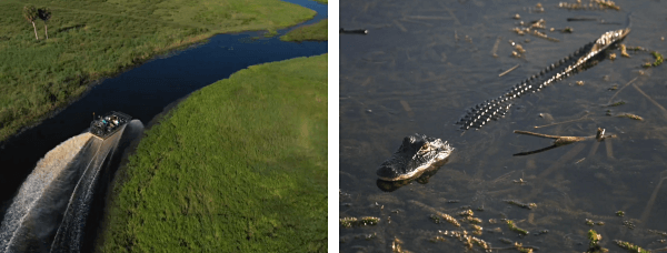此外,也可以花36美金,去体验 草上飞/汽船,深入沼泽看风光和动物,体验非常独特(如果夏季前往,大概率看不到鳄鱼,只是坐船兜风),与上面的野生动物园是同一个地点
