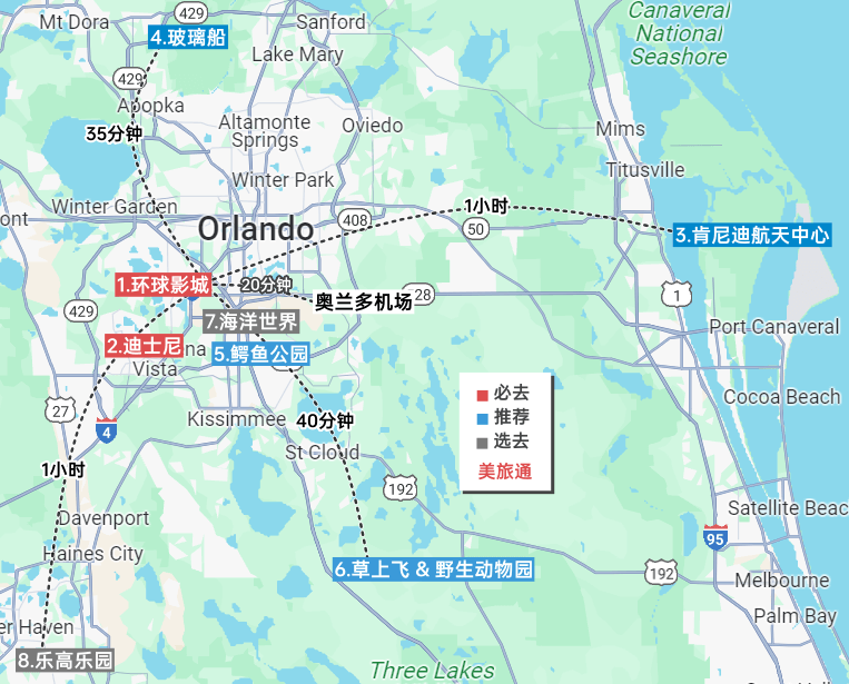- 环球影城:因为新开了园区,至少要玩2天,很多项目都是奥兰多独有的