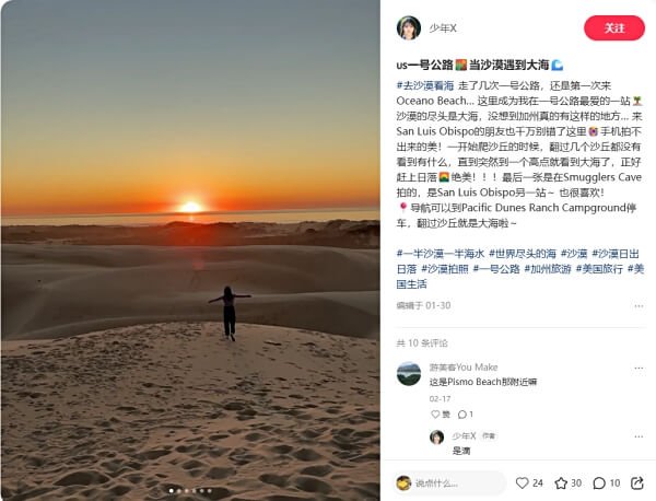 推荐小红书笔记 - 日落:一号公路 当沙漠遇到大海
