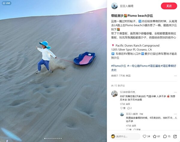 推荐小红书笔记 - 滑沙:带娃滑沙 Pismo beach沙丘