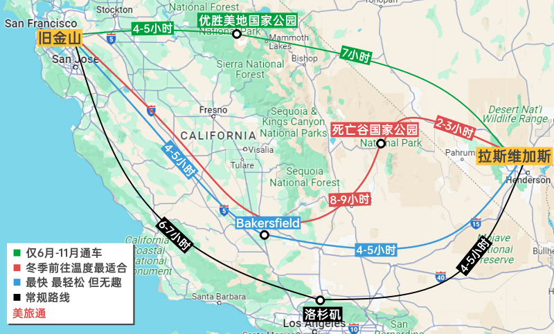 旧金山到拉斯维加斯的自驾路线
