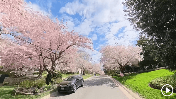 这是一个街道两旁种满樱花树的富人社区