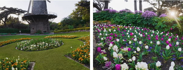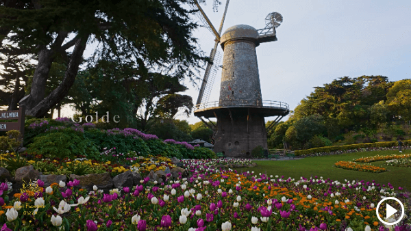 金门公园 Golden Gate Park 横跨53条街,0.8km宽,4.8km长,长方形,共1017英亩(故宫的5.7倍/西湖景区的六分之一),里面又分为小公园和7个人工湖,比纽约的中央公园大20%(美国先有的纽约中央公园,然后旧金山人觉得自己也应该有一个,就搞了这个更大的金门公园),内部有 加州科学博物馆,笛洋美术馆,日本茶园,植物园以及大片绿地,可安排半日或一日游览
