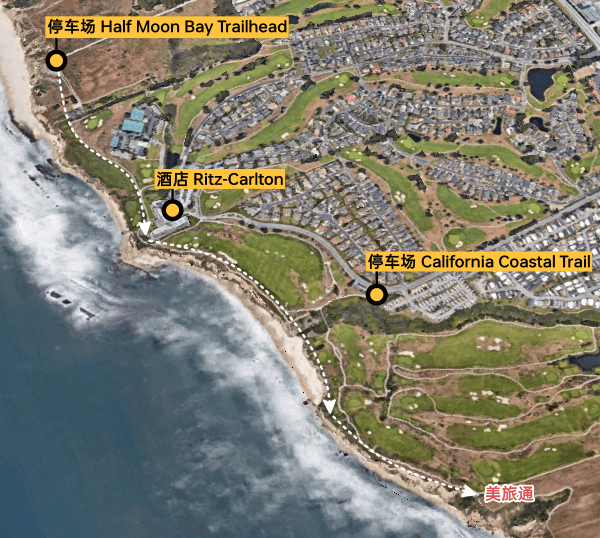 半月湾区域最有人气的步道,期间会经过酒店 Ritz-Carlton(