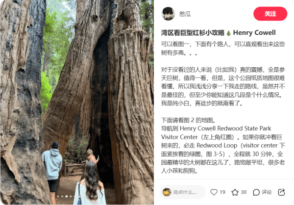 ,在红杉林中穿梭,适合亲子游或带年长父母同行