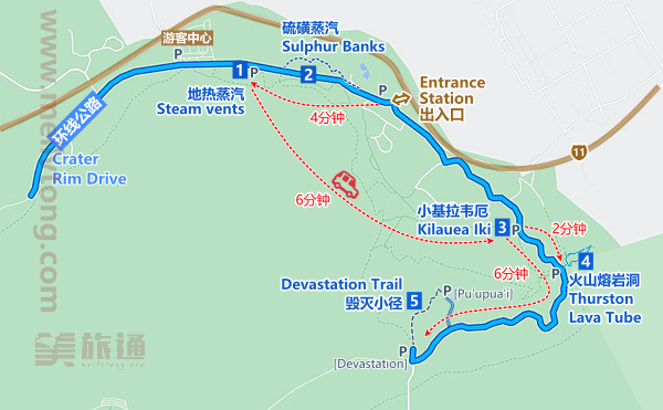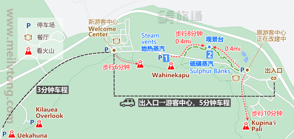 距离:停车场到游客中心275米;到观景台0.27英里,步行6分钟