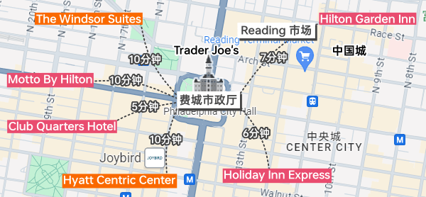 地址:停车费4美金/2小时(需在市场消费超过10美金) 11th & Arch St. Hilton Garden Inn Garage