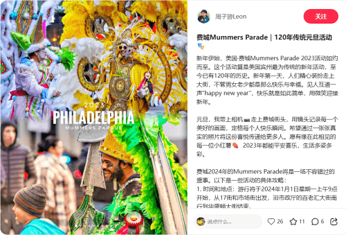 推荐小红书笔记:费城 Mummers Parade|120年传统元旦活动
