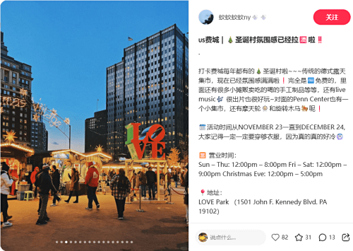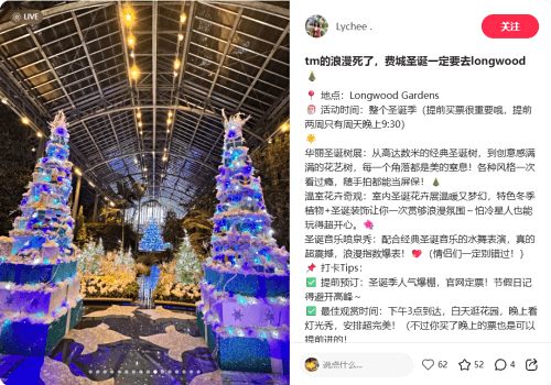 推荐小红书笔记:tm的浪漫死了,费城圣诞一定要去longwood