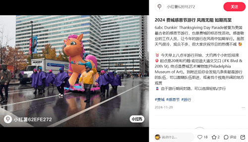 推荐小红书笔记:费城感恩节游行 风雨无阻 如期而至