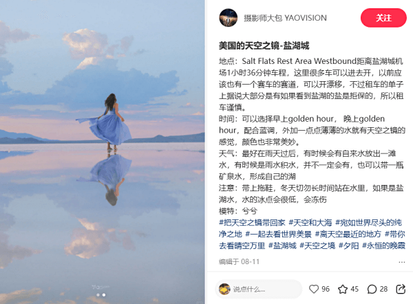 推荐小红书笔记:美国的天空之镜-盐湖城