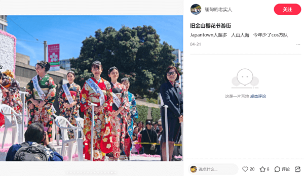 推荐小红书笔记(去年):旧金山樱花节游街