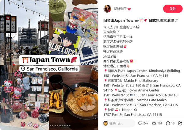 推荐小红书笔记:旧金山Japan Town 日式氛围太浓厚了