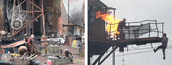 英文名称:The World-Famous Studio Tour 查看地图 身高要求:无 简介:这个是很传统(1964年就有),但也很经典的项目,且只有洛杉矶环球影城运营,坐车60分钟,经过13个主题区,观看好莱坞影片特效现场(爆炸/空难/洪水/地震/大白鲨/金刚vs恐龙/速度与激情等),这些场景是搭建的,但里面的道具多是在真实电影中使用过的。有中文导游车,每天3场左右,时刻表看这里 推荐视频:The World-Famous Studio Tour - 4K POV