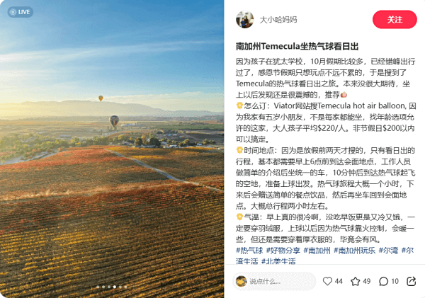 南加州Temecula坐热气球看日出