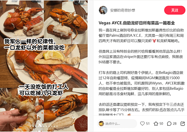 推荐小红书笔记:拉斯维加斯必吃,自助天花板果然名不虚传