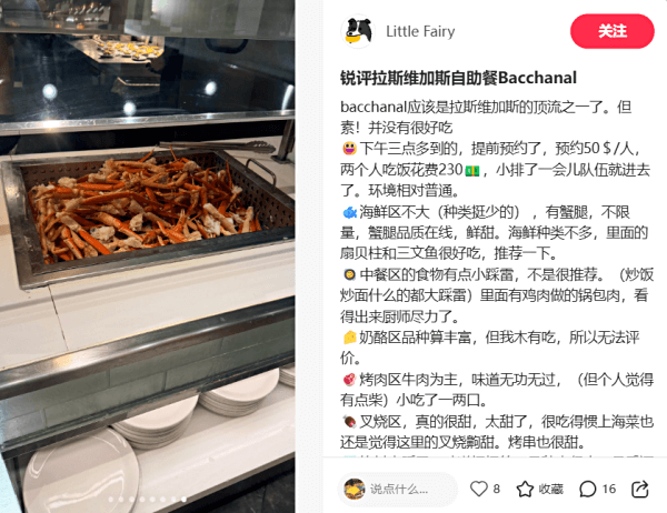 推荐小红书笔记:锐评拉斯维加斯自助餐Bacchanal