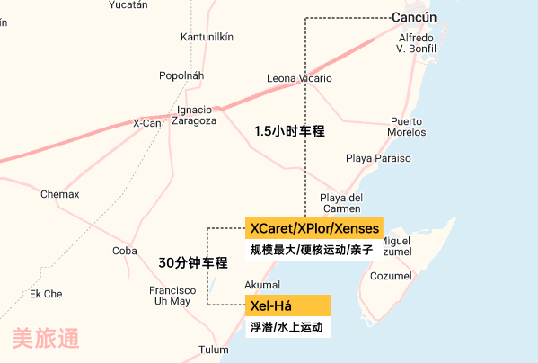 XCaret,XPlor 和 Xel-Há 适合各玩1天;Xenses 较小,适合半日游