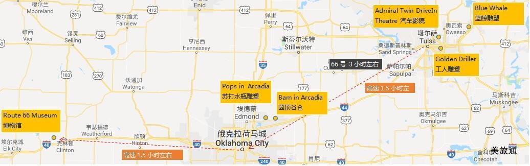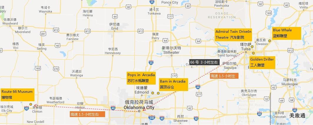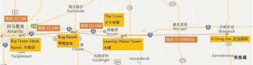 66号经过的城镇:Texola > Amarillo > Glenrio