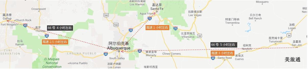 主要景点:阿尔伯克基 Albuquerque,圣达菲 Santa Fe