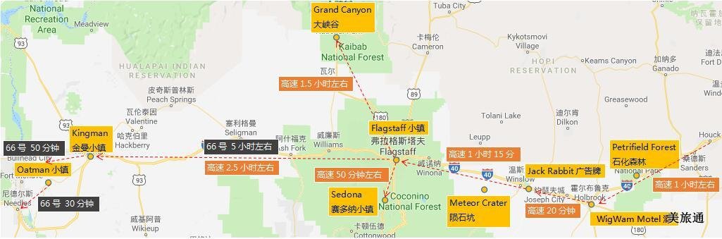 66号经过的城镇:Glenrio > Santa Rosa > Tijeras > Grants > Manuelito
