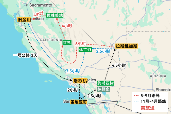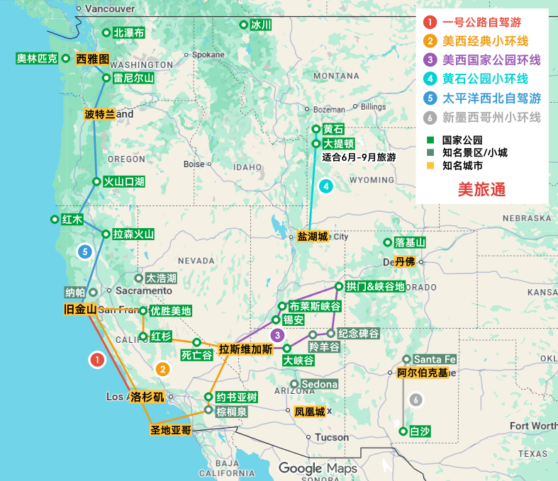 美西自驾路线地图: