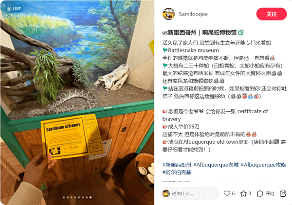 推荐小红书笔记:新墨西哥州|响尾蛇博物馆