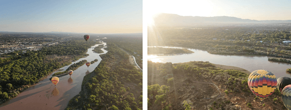 阿尔伯克基的气候条件非常适宜乘坐热气球。事实上,全球最大规模的热气球节每年都会在这里举行。这项活动由当地著名的 Rainbow Ryders 公司负责运营,他们拥有40多个热气球,并且都经过了美国联邦航空局的认证,累计飞行时间超过5万小时