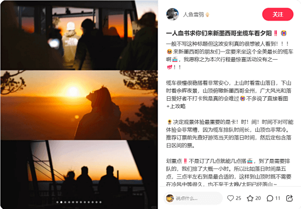 推荐小红书笔记:一人血书求你们来新墨西哥坐缆车看夕阳