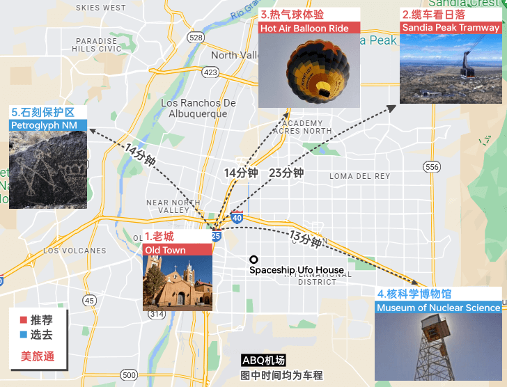 ‣ 阿尔伯克基的机场是 Albuquerque International Sunport(ABQ) ,距离市区15分钟车程,租车价格见这里